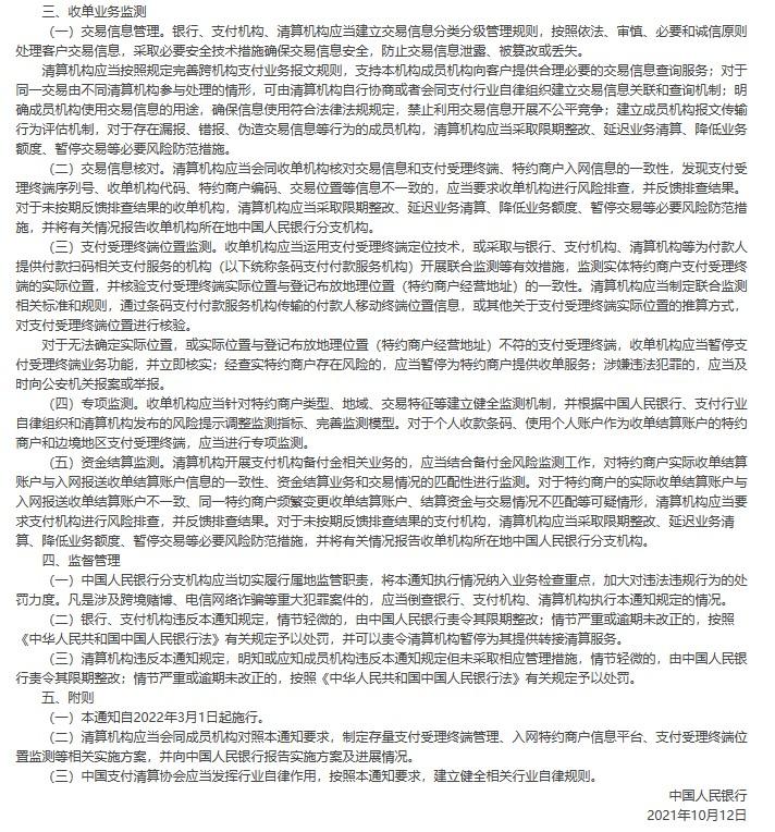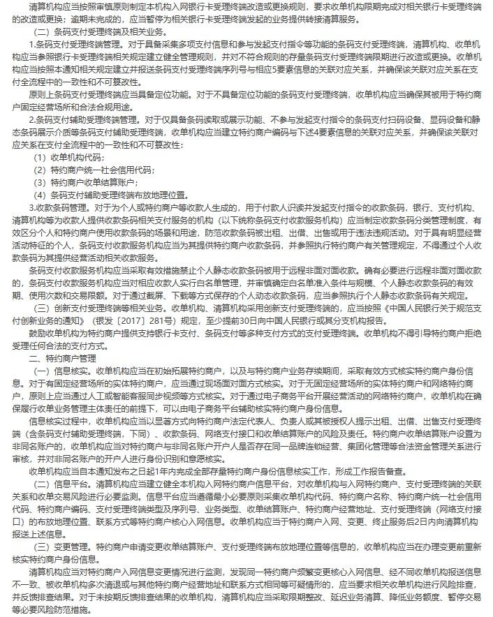 2021年10月13日,人民銀行發布了《中國人民銀行關于加強支付受理終端及相關業務管理的通知》(簡稱259號文件),從支付受理終端業務管理、特約商戶管理、收單業務監測三個方面入手,對收單機構和清算結構提出了一系列的管理要求,自2022年3月1日起施行。其中,文件中的兩個內容,對支付行業從業者以及用戶有很大影響: