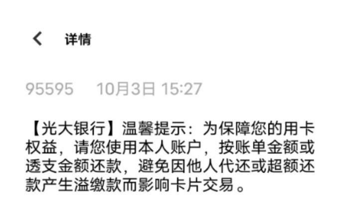 不少持卡人反映,最近幾天收到了銀行的短信提醒:請(qǐng)使用本人賬戶,按賬單金額或透支金額還款,避免他人代還或超額還款產(chǎn)生溢繳款而影響卡片交易。
