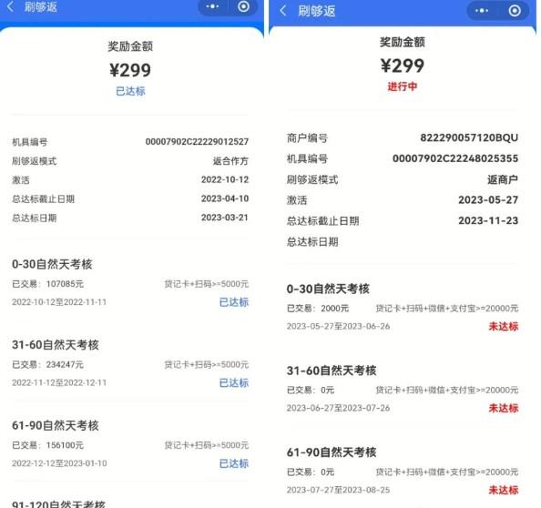 左邊的是返給了POS機代理商了,右邊的才是真正返給POS機用戶的