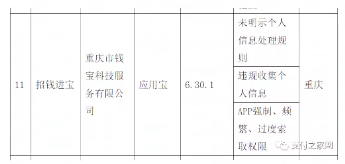 川渝地區(qū)APP典型違規(guī)案例中,重慶市通信管理局通報(bào)了重慶市某金融支付類APP,疑似“招錢進(jìn)寶”。