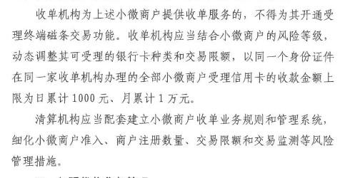 第三、對于小微商戶的限額管理,無論是POS非接交易,還是掃碼類交易,都是進行了信用卡限額。這個針對信用卡的日限額1000,月限額1萬,已經(jīng)執(zhí)行了6年!重點注意,是指同一機構(gòu)同一身份證辦理的總限額。聽懂掌聲!