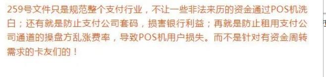 首先不能把責(zé)任全部歸咎給259號(hào)文的執(zhí)行,原因是多樣話的,并且POS終端固定一機(jī)一碼后,很多人的銀行卡都還是可以正常使用的,并沒有出現(xiàn)被封卡降額的情況。