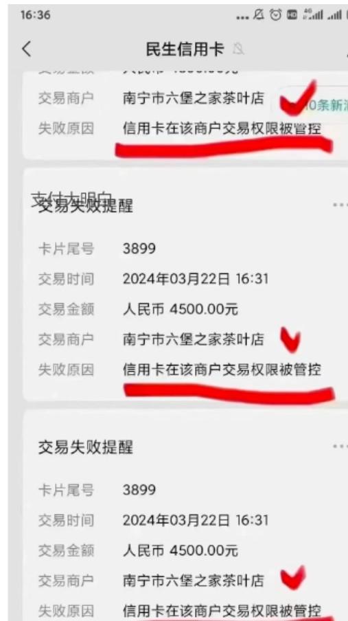 有的銀行就提醒用戶:交易失敗,在該商戶交易權(quán)限被管控。
