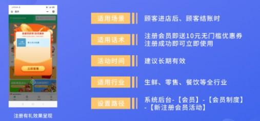 會員價、會員折扣,將散客變會員,注冊會員同時發(fā)放新人優(yōu)惠券,吸引新客留資,快速引導(dǎo)成交;會員專屬福利,增加用戶粘性,減少顧客流失;