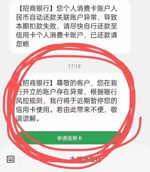 招商銀行,根據(jù)風控規(guī)則,暫停信用卡使用。