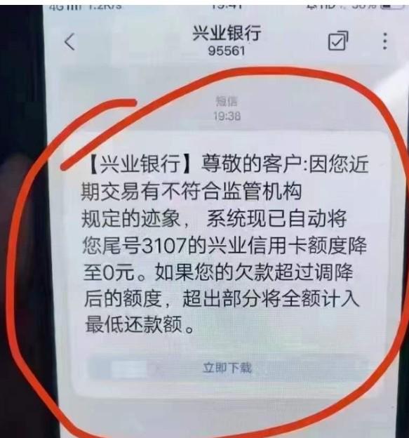 興業(yè)銀行,近期交易有不符合監(jiān)管機構(gòu)規(guī)定的跡象,系統(tǒng)自動將信用卡額度降至0元。