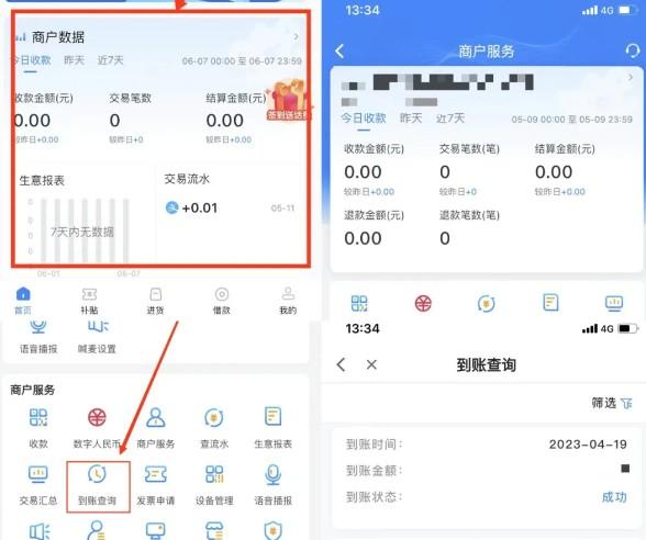 拉卡拉APP首頁點擊“商戶數(shù)據(jù)”查詢明細