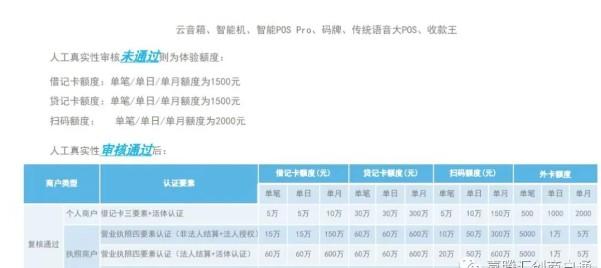 刷卡交易額度:收款王小微個人商戶審核通過后的刷卡收款借記卡初始額度為單筆5萬,單日5萬,單月10萬,貸記卡單筆30萬,單日30萬,單月300萬。