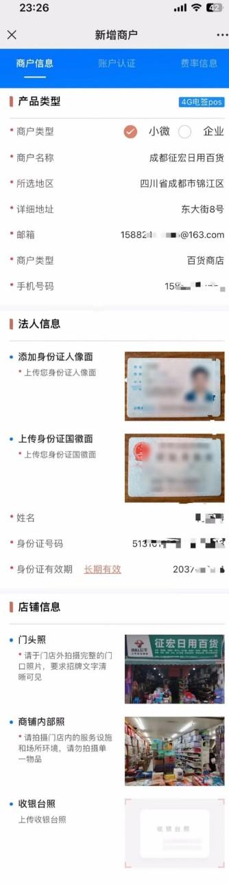 第一步:選擇商戶類型,填寫商戶店鋪信息,上傳商戶個(gè)人信息