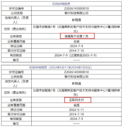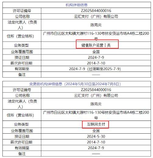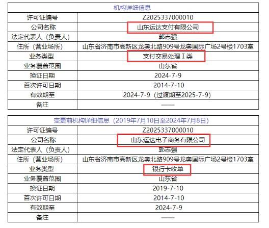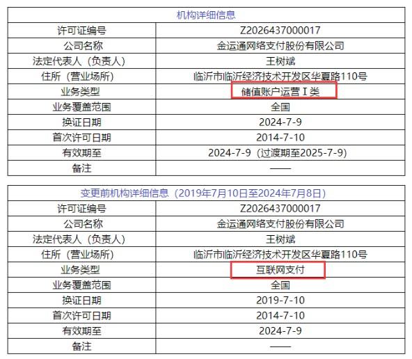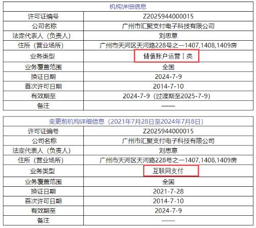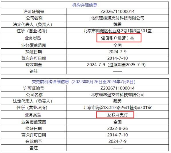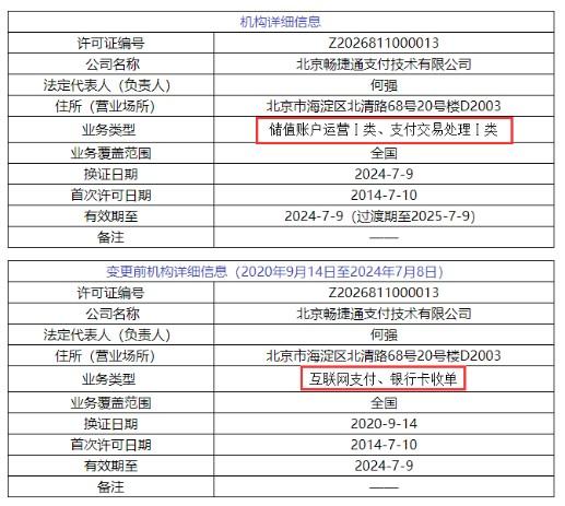 據POS圈支付網發現,原本在7月9日牌照到期需進行續展的16家支付機構均已換發新支付牌照,牌照有效期截止日從“2024年7月9日”更新為“2024年7月9日(過渡期至2025年7月9日)”;同時業務類型也分別調整為儲值賬戶運營或支付交易處理。