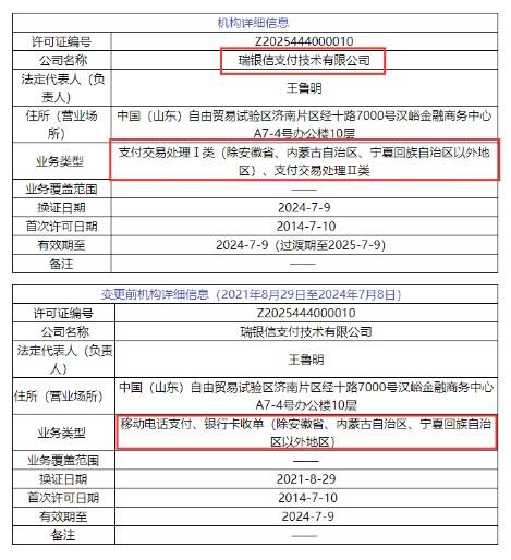 銀行卡收單調整為支付交易處理Ⅰ類,經營地域范圍不變;