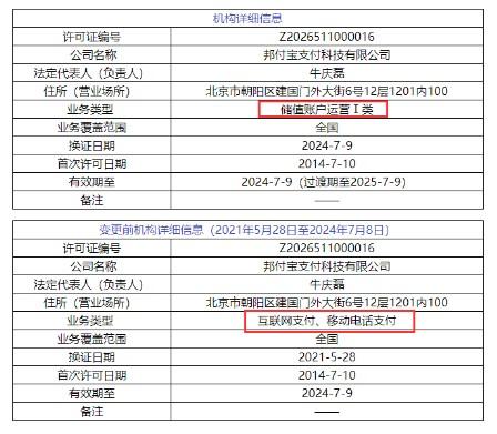 業務類型:儲值賬戶運營Ⅰ類、支付交易處理Ⅰ類(全國)