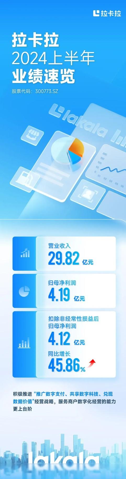 拉卡拉2024上半年?duì)I收29.82億元,穩(wěn)步上升