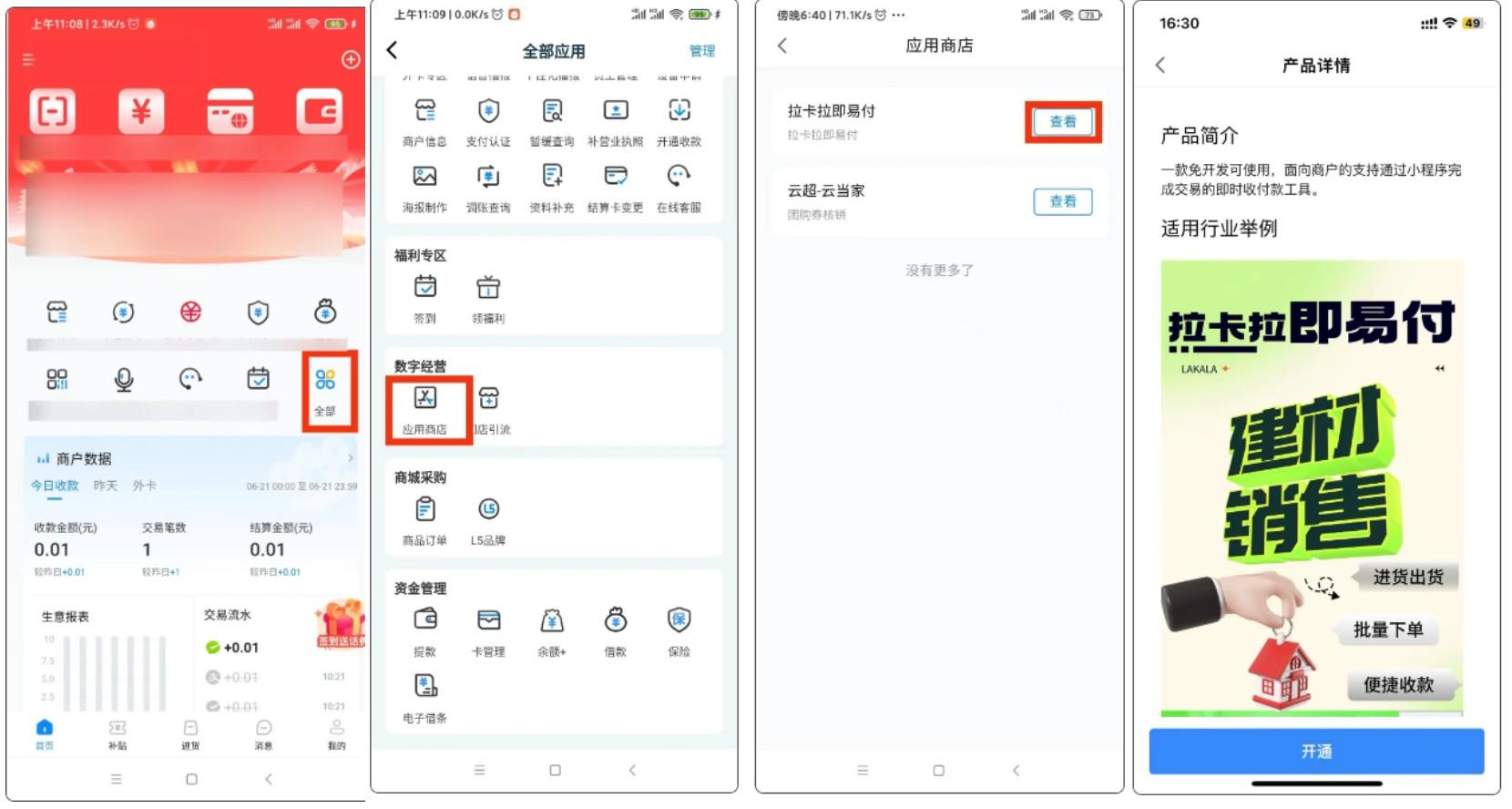 【拉卡拉錢包App首頁-全部-數(shù)字經(jīng)營-應(yīng)用商店-跳轉(zhuǎn)拉卡拉即易付小程序】