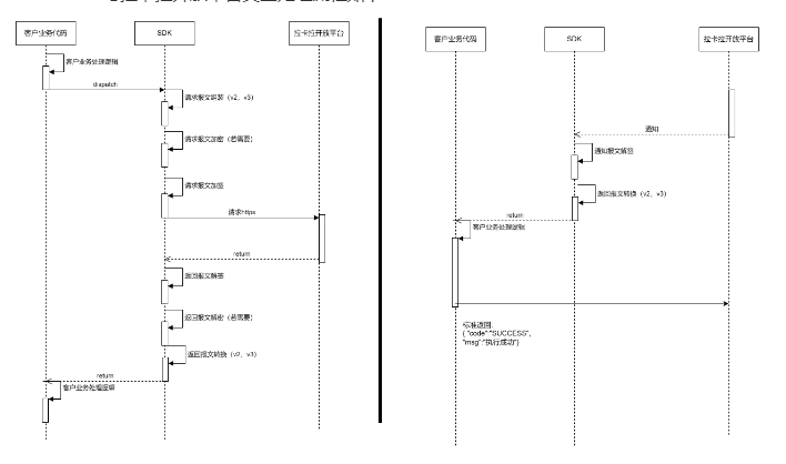 Lakala SDK與拉卡拉開放平臺交互處理流程如下: