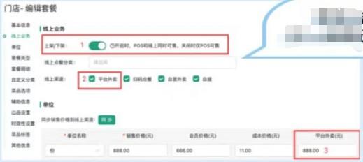 以下三個(gè)設(shè)置均需要新建菜品后